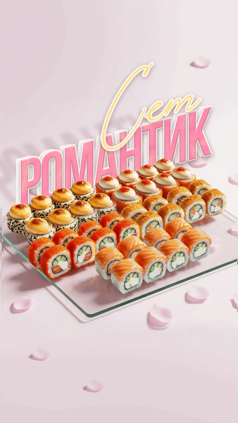 Пицца "Мясное Ассорти" на сливочном соусе 33 см. Пицца "Пепперони" на томатном соусе 33 см. Роллы "Креветка Икра Спайси", Роллы "Лосось Фри", Роллы "Лосось-Икра-Краб", Роллы "Морской Микс" запеченные.